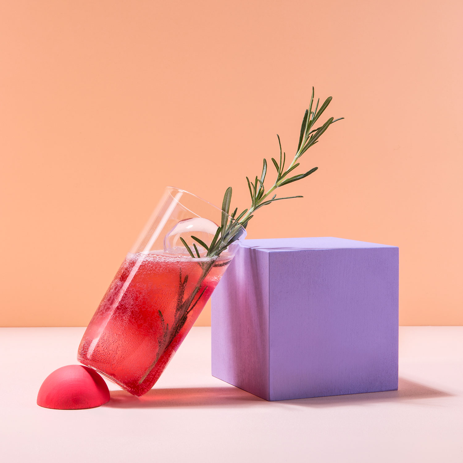 Longdrinkglas / Eiswürfel / Rosmarinzweig
